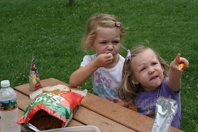 We went to Farm City Days on Saturday with Grandma and Grandpa, Grace and Lucy. It was a HOT day, and because of the rain the night before we had to park and ride a bus to get to the farm. It was Lucy and Lauren's (and technically Ella's too) 1st school bus ride! Lauren was really excited to get on the big bus, and with the help of Grace, a seasoned pro, she did great! Although Grace was not impressed that Grandpa was letting Lauren stand up and put her hands out the window! Pretty sure Lauren will be the naughty one on the bus!